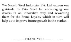 for the Cold Rolled Steel Products, Hot Rolled, Galvanised, Tata Tiscon and Tata Wiron Products